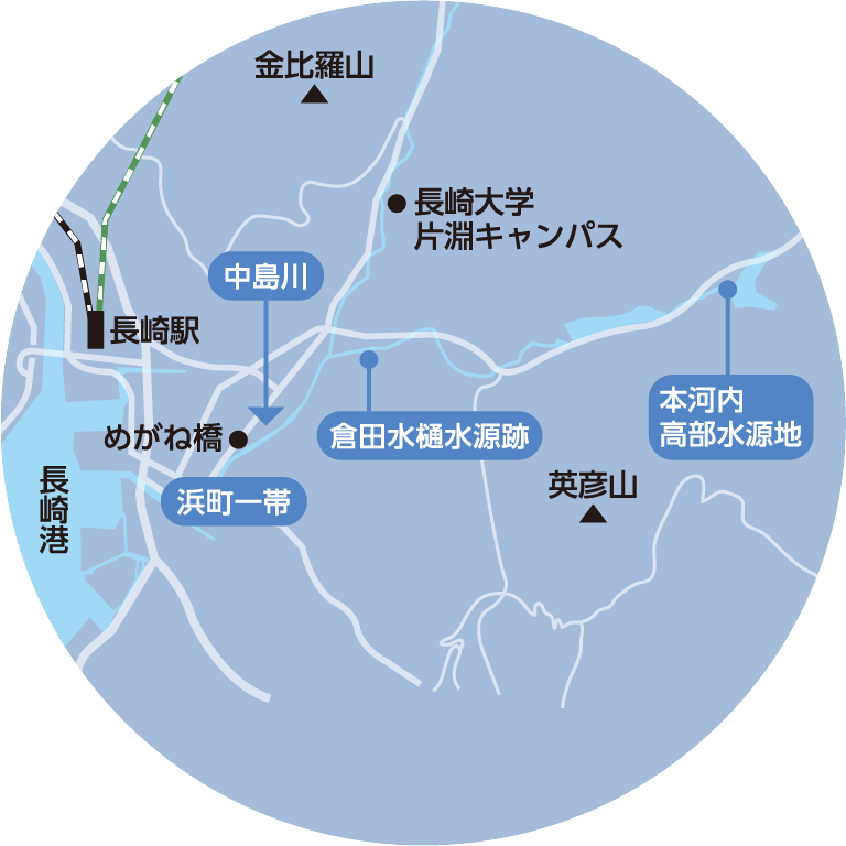 いち早く開港した長崎の町は水資源に恵まれず、どのようにして水を確保し供給するのか、早い時期から問題と向き合ってきた歴史がありました。